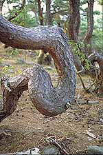 Missbildung eines Baumes Im nebenstehenden Bild sehen Sie die Missbildung eines Baumes, aufgrund des Einflusses der Strahlung aus einer geopathogenen Zone, auf der dieser Baum gewachsen ist. Der Baum ist ca. 60 Jahre alt. Das Wachstum des Baumes wurde durch linksdrehende (abziehende) Erdstrahlung so stark beeinflusst, dass die im Bild ersichtliche Mutation aufgetreten ist |